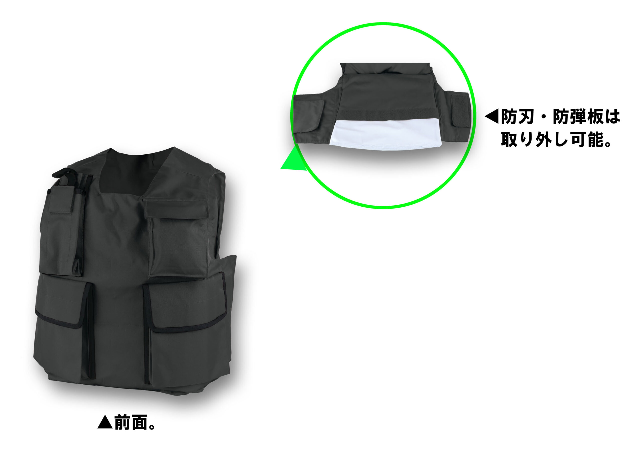 ・防刃、防弾共に「前面」「側面」「背面」をカバー。
