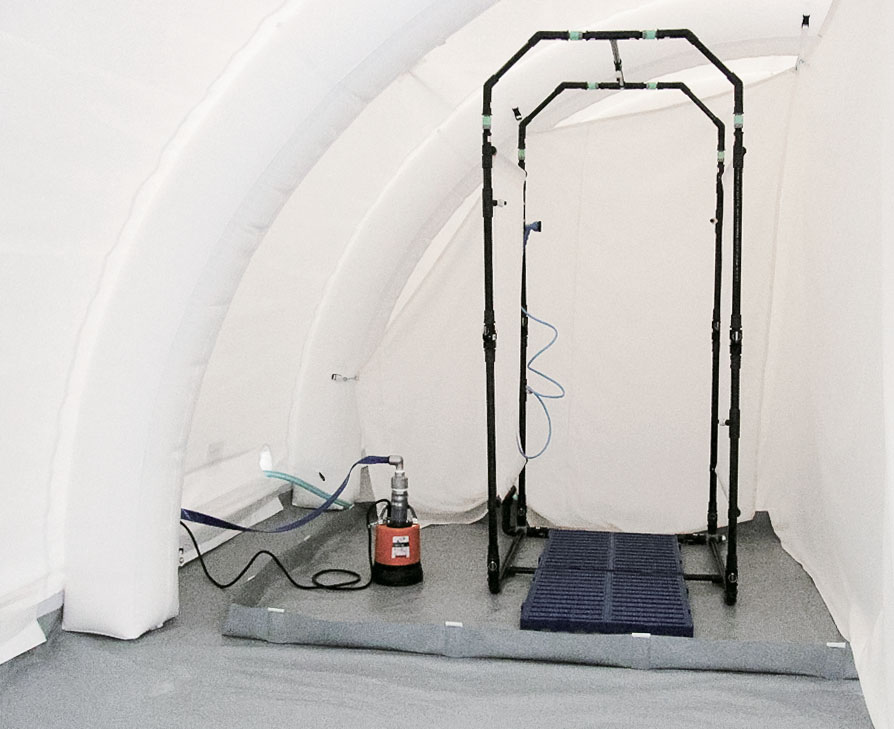 除染ライン2 レーン設営可能。脱衣、除染、着衣が1 つのテントで行えるシステム